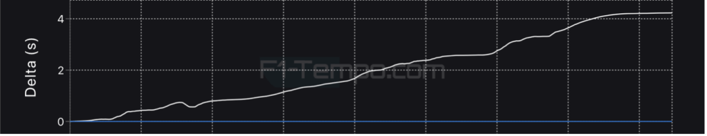 Bei dieser Dominanz wundert es nicht, dass Red Bull den teaminternen Undercut von Verstappen gegen Perez beim Wechsel auf die Trockenreifen durchgeführt hat. In der trockenen Phase des Rennens behält Max die Ruhe und ist im Durchschnitt zwei bis fünf Zehntelsekunden schneller im Red-Bull-Vergleich zu Perez. Als es gegen Runde 60 wieder angefangen hat zu regnen, hält Max Verstappen im Vergleich zu seinem Teamkollegen nicht nur das Auto auf der Strecke, sondern ist dabei auch noch signifikant schneller. Durch diesen Vorsprung konnte der WM-Führende auch nochmal an die Box gehen, um sich die Full-Wets abzuholen ohne eine Position zu Verlieren. Perez wurde von Red Bull in der gleichen Runde wie Max an die Box gerufen und wäre ohne die Rot-Unterbrechung ausgelöst von Zhou Guanyu auf Platz sechs zurückgefallen. Zusätzlich ist Perez bei der Einfahrt in die Boxengasse noch in die Mauer gefahren und dadurch zu schnell in die Pitlane gefahren. Es folgte eine Fünf-Sekunden-Strafe und der Verlust des Podiums.